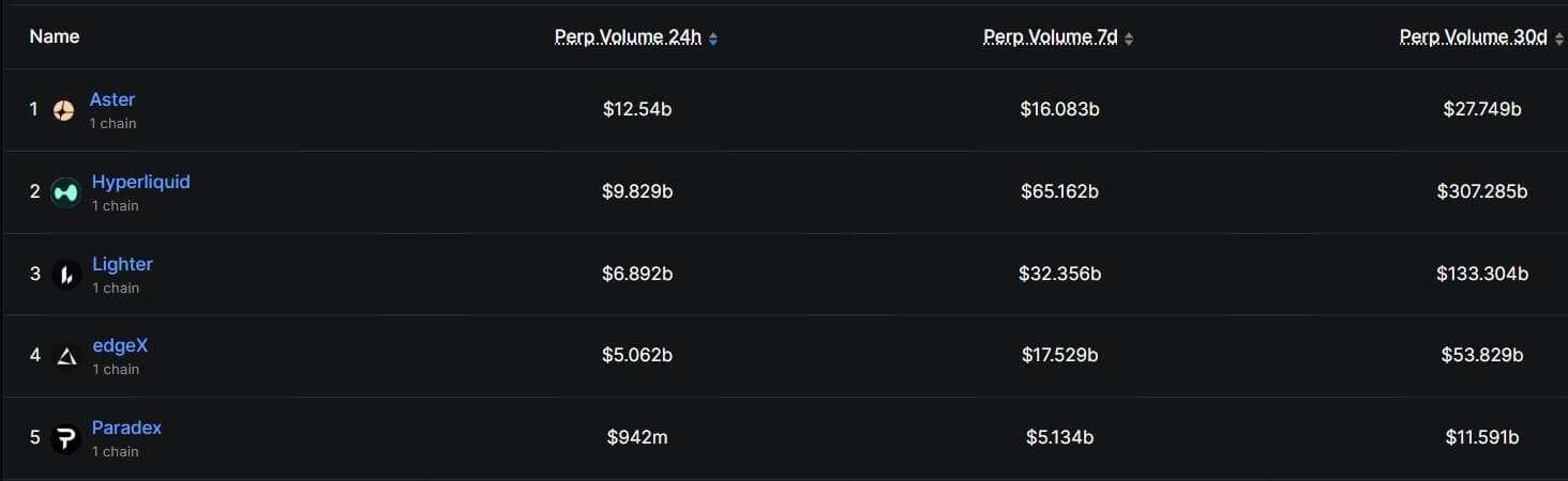 Aster’s perpetuals daily volume edges past Hyperliquid with over $12 billion trading surge